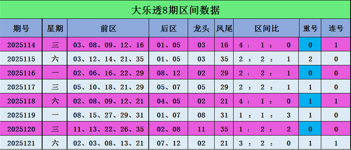上期开奖号码为大大组合07、12,近50期小小组合出现15期,小大组合出现了27期,大大组合出现了8期,近10期小码出现11次,大码出现9次,详尽探讨后区保举小大组合:03、08